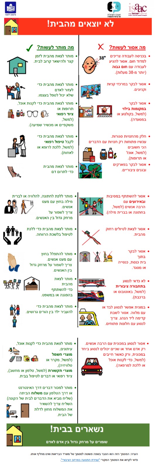 להנחיות של משרד הבריאות – בשפה פשוטה עם סמלים – נכון לתאריך 29/3/2020: